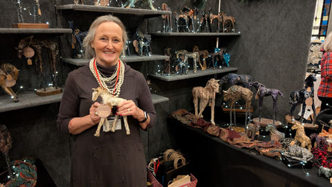 Artisan Lori Welch is “Farmyard Fibers”. This fiber artist specializes in making animals to scale with wire armatures which are posable. These works of art are critters of our world - from tiny creatures to some which are life size. Her creations are so realistic you will be giving them names and find yourself talking to them.